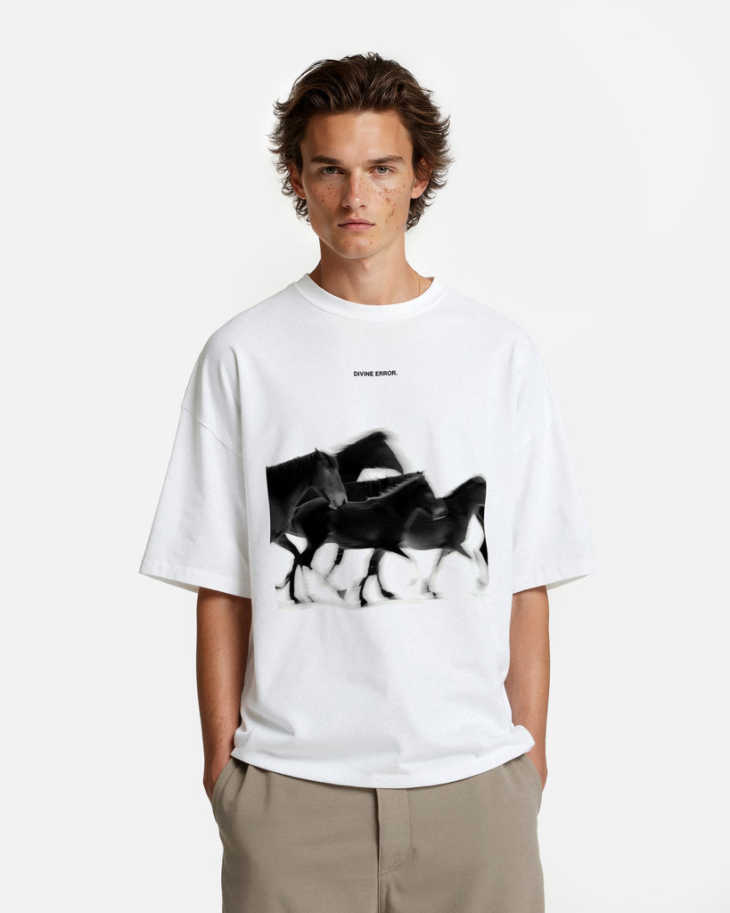This drop introduces the core DNA of Divine Error™: poetic rebellion, wearable philosophy, and imperfection as power. Each piece is designed as a contradiction—clean lines disrupted by chaos, simplicity filled with subtext.
