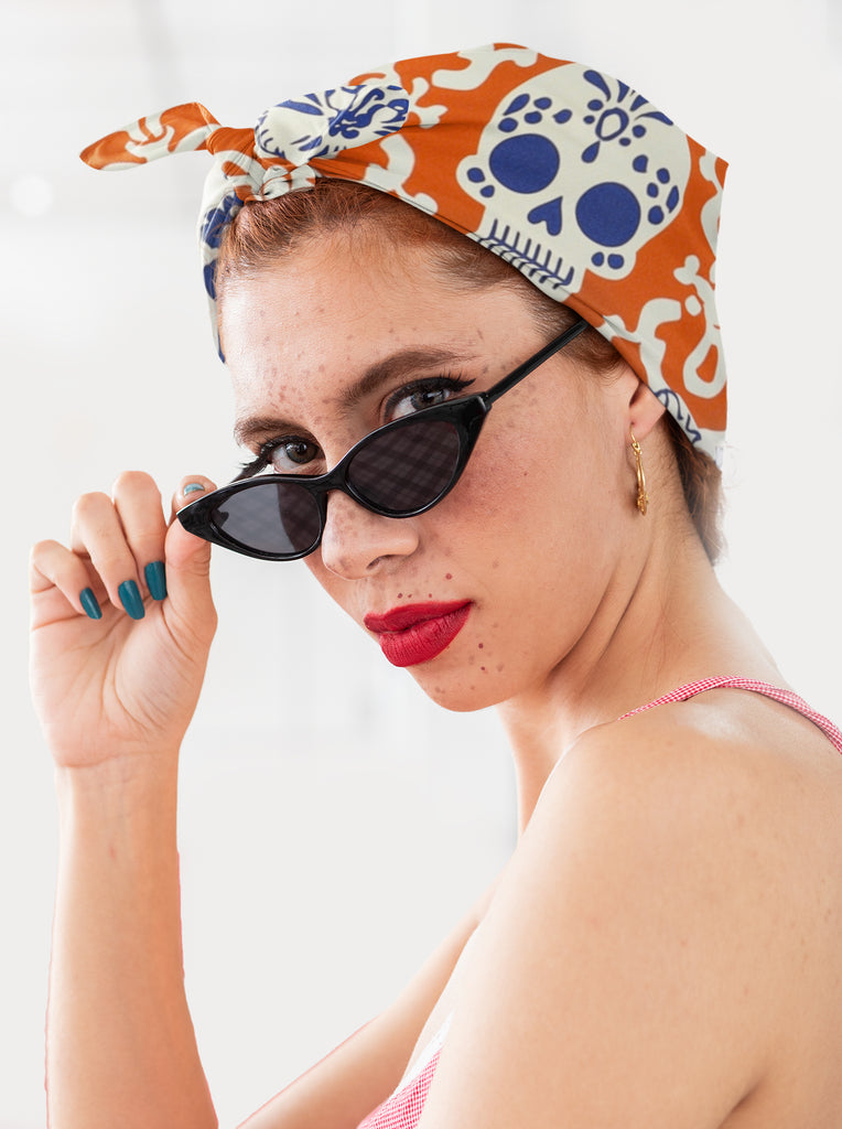 This design finds its roots in the vibrant traditions of Día de los Muertos, a celebration with deep origins in Mexican culture. Born from a blend of indigenous Aztec rituals and Catholic beliefs, Día de los Muertos honors deceased loved ones with colorful ofrendas, joyful gatherings, and vibrant symbols like the Calavera. This skull, far from being morbid, represents life and rebirth, a reminder that our connection to loved ones transcends physical death. The vibrant orange and blue hues in this design evoke the marigolds that guide spirits home and the fiery sunsets that paint the sky during this special time of remembrance.