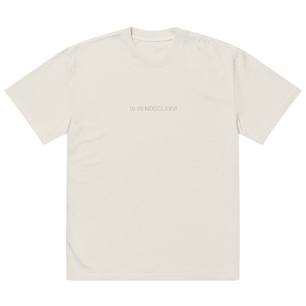 Oversized faded t-shirt with personalized birthday in Roman numeral.