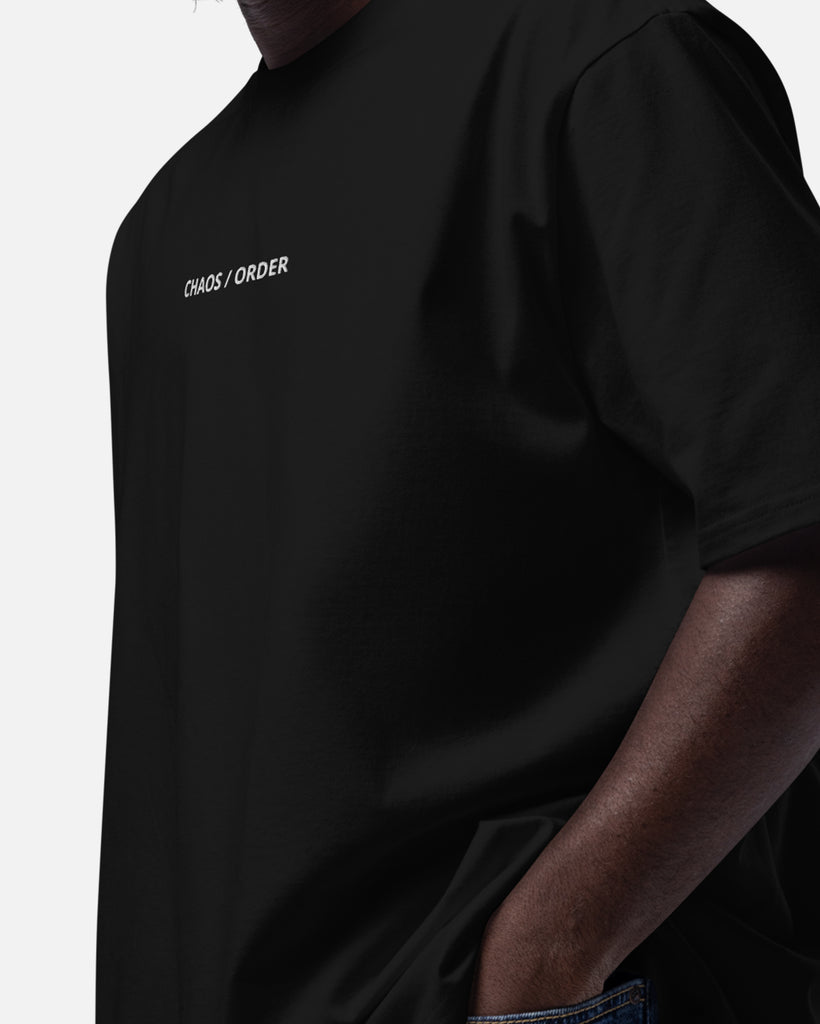 Life exists in duality—chaos fuels creativity, order brings clarity. True balance lies in embracing both. This tee represents the constant interplay between the unpredictable and the structured, reminding you to flow between the two with confidence.