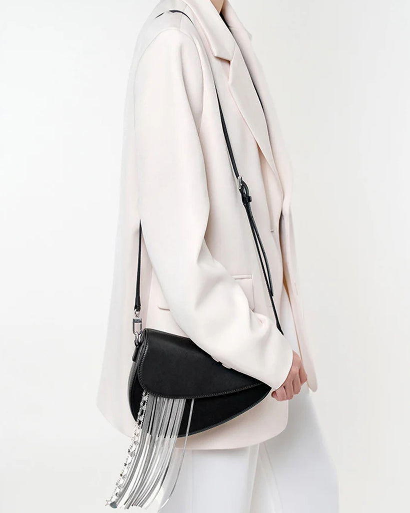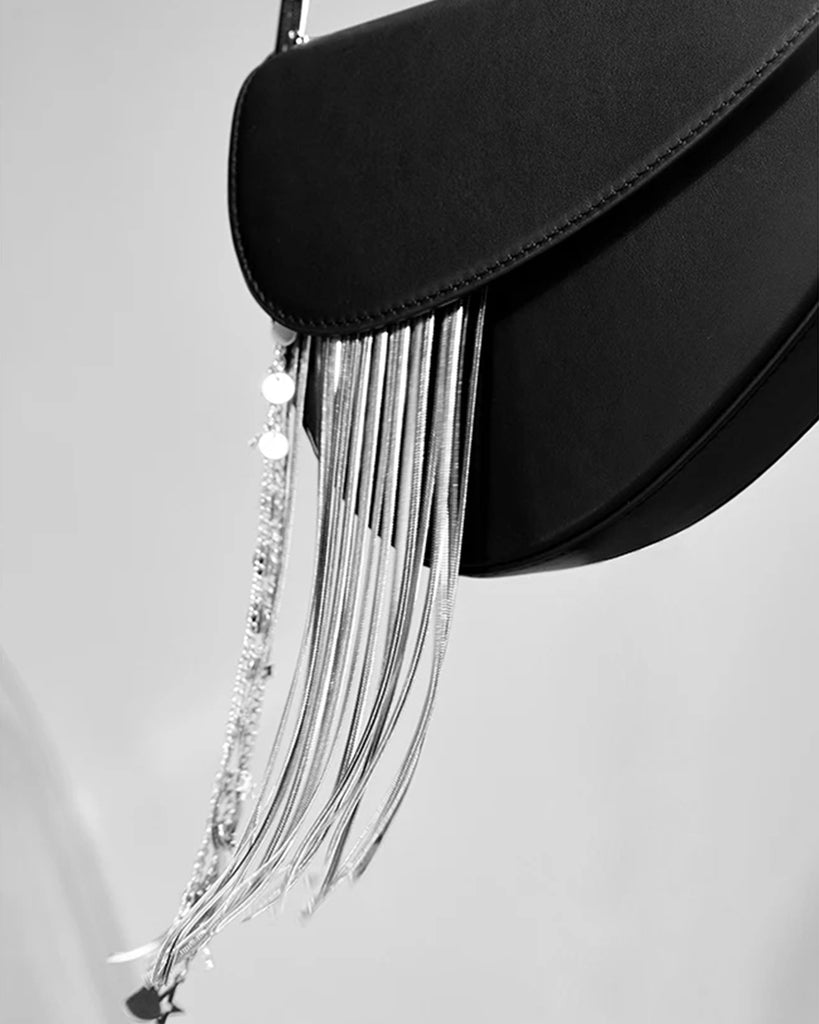 Experience the ultimate luxury with La Cascade, the genuine leather diva handbag. Stand out with unique tassels and embrace your individuality with this stunning, high-end piece.
