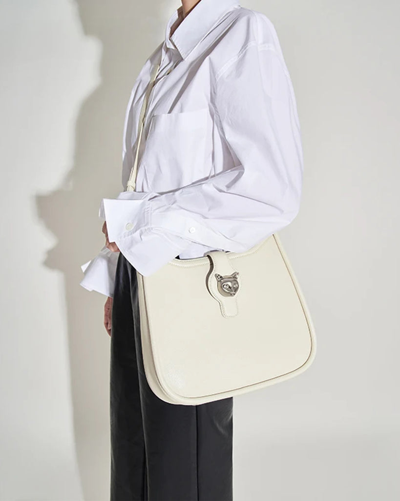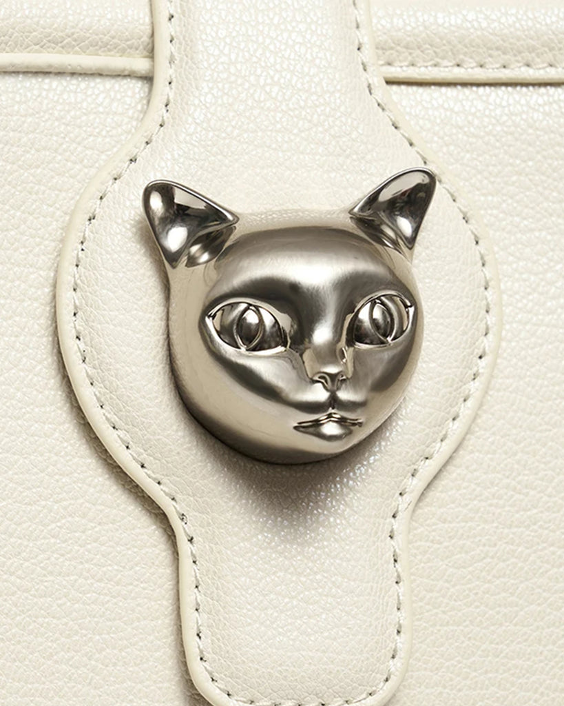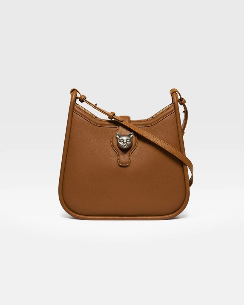 Expertly crafted with split leather, Le Chat Crème is a luxurious and versatile bag for anyone. The spacious interior, including a silt pocket with lock, offers ample storage while the vintage cat details add a touch of charm. Perfect for any occasion, this unisex bag is designed with single straps for comfortable carrying.