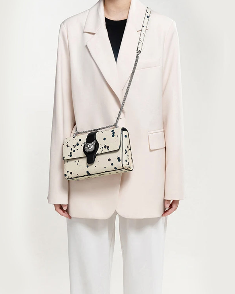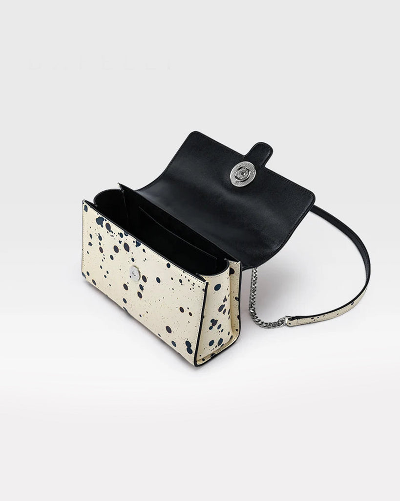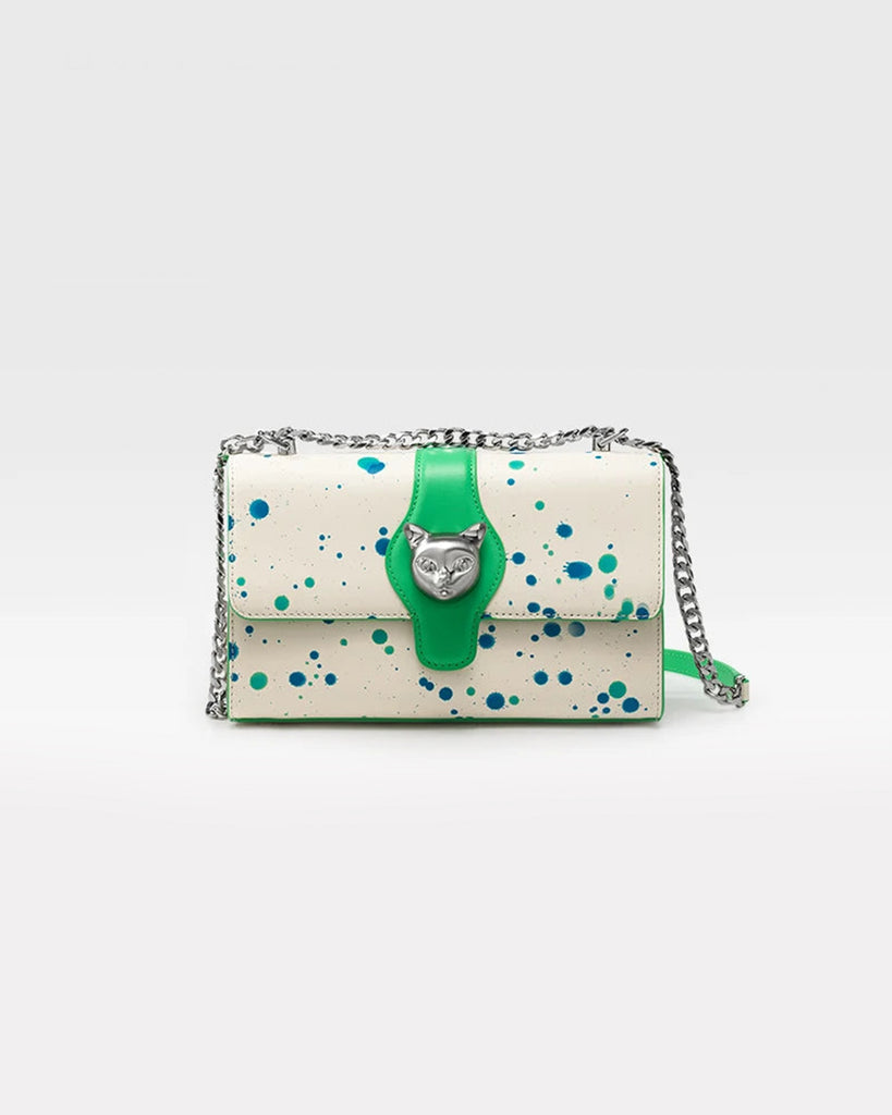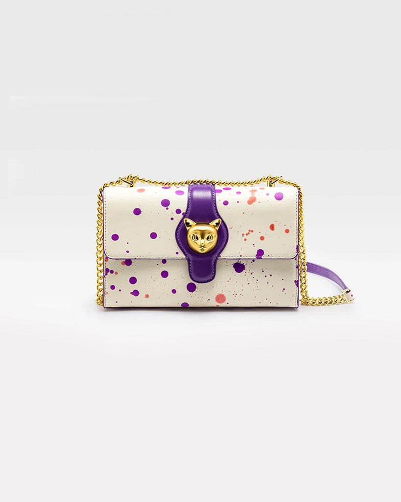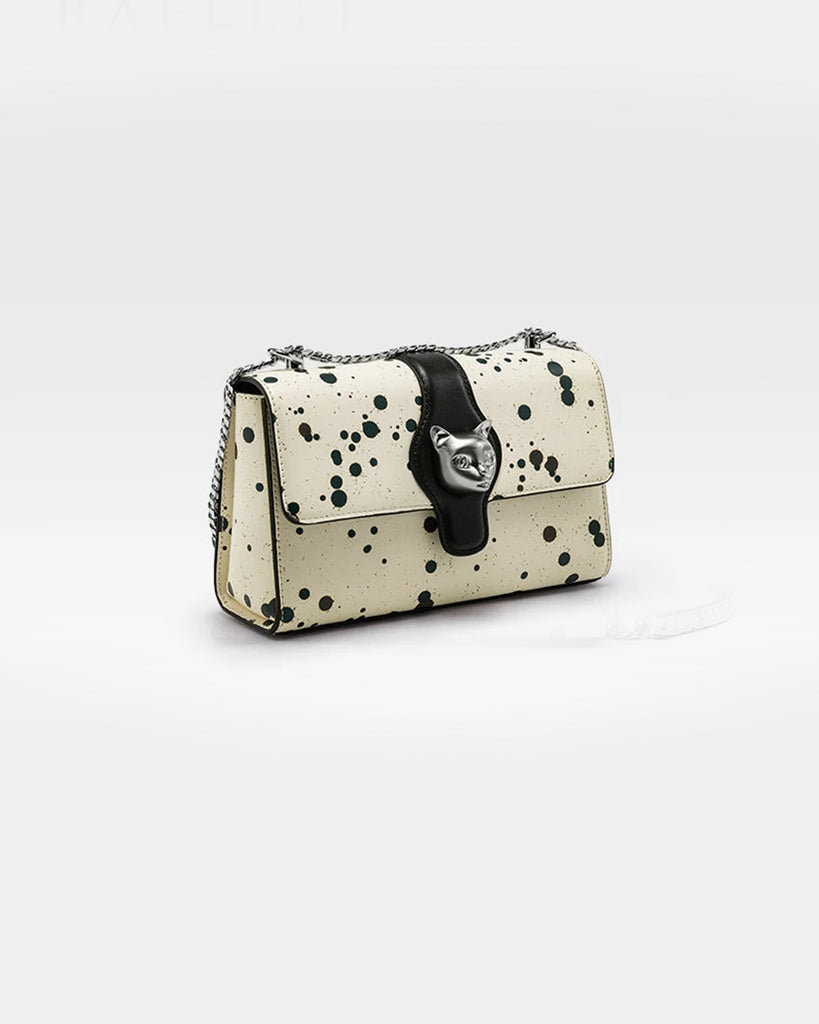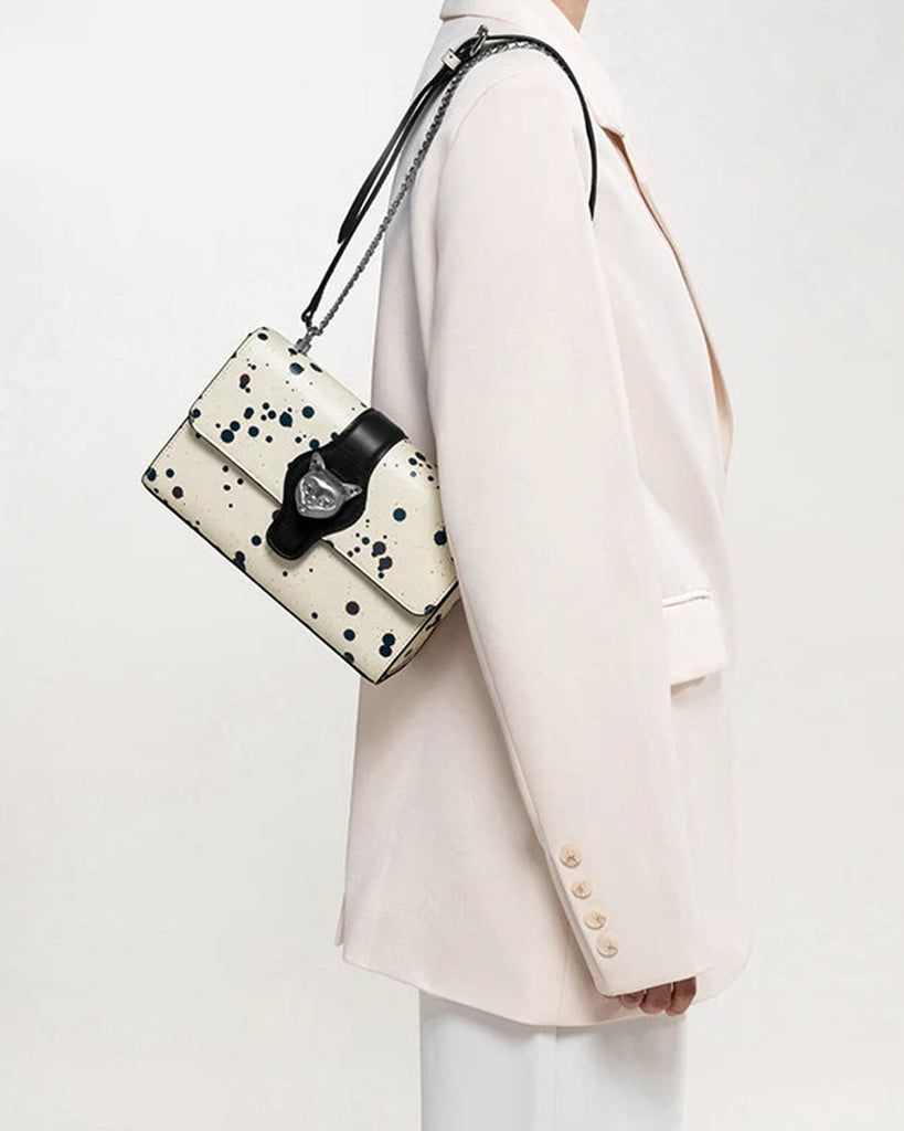 Made for the sophisticated and stylish, Le Chat Malin is a luxurious and playful accessory. The genuine cow leather, inspired by the smart cat, comes in a trendy white with dot design available in 3 colors. Bold yet playful, this bag is a must-have for any fashion-forward individual.