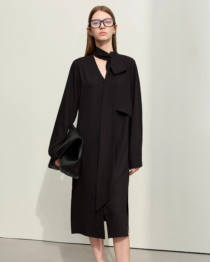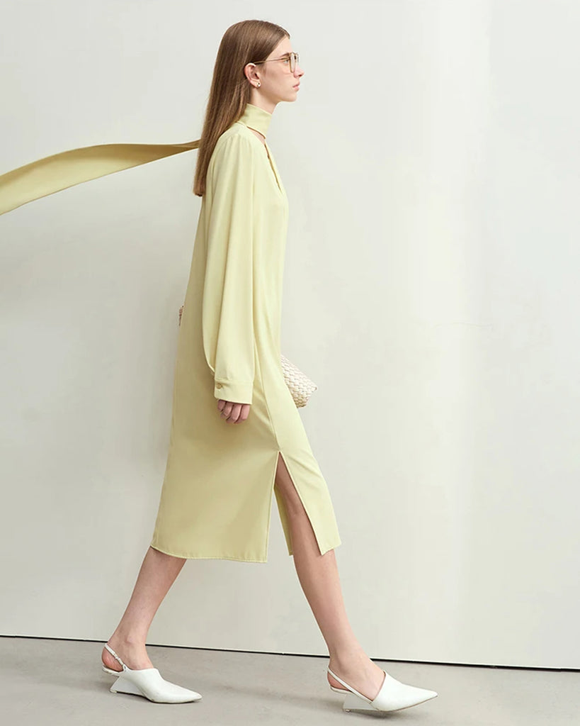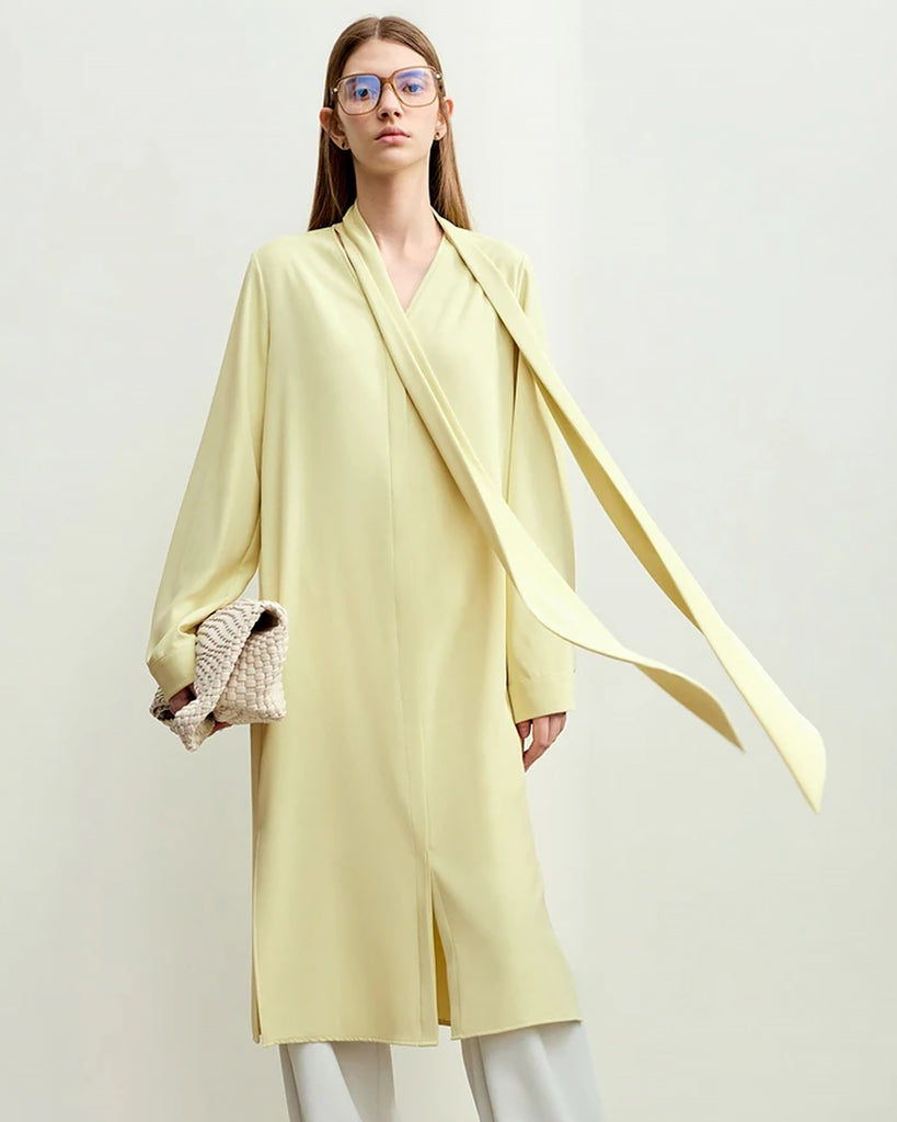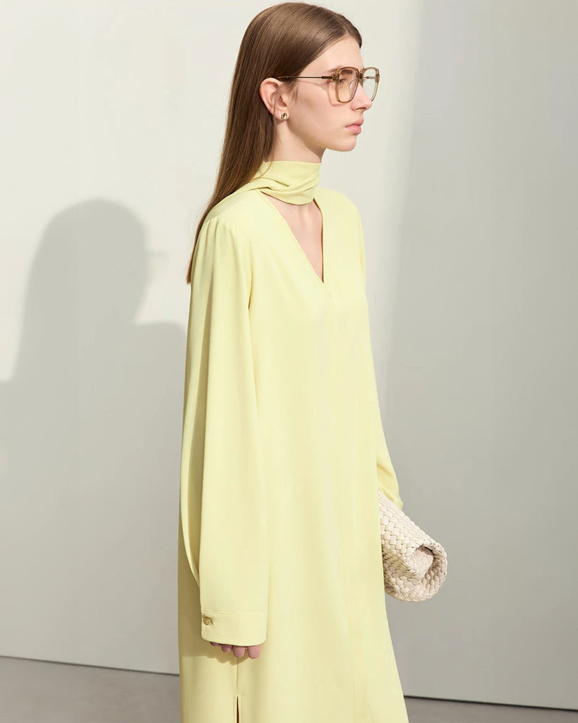 Poetic and lovely, the Primrose Dress features elegant chiffon and a timeless midi design. The long sleeves make it suitable for spring, while the v-neck adds a touch of minimalist charm.