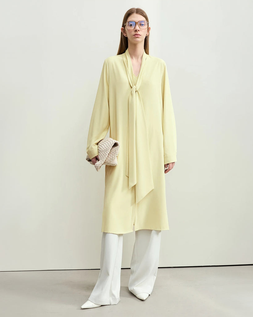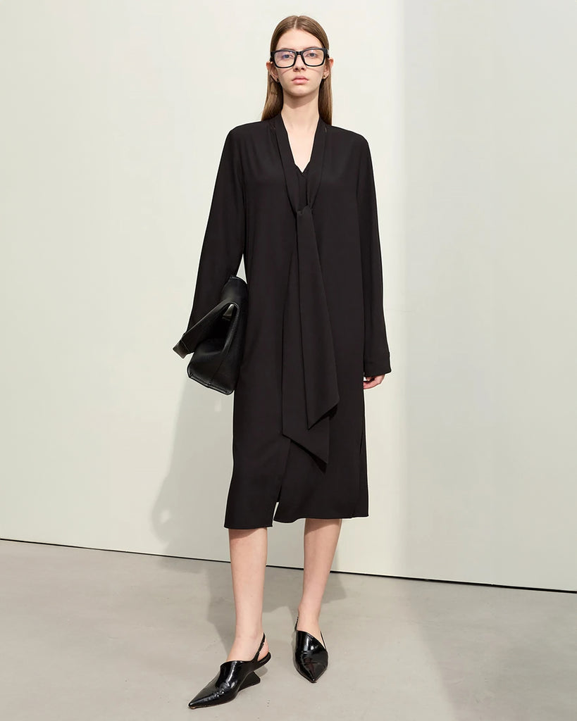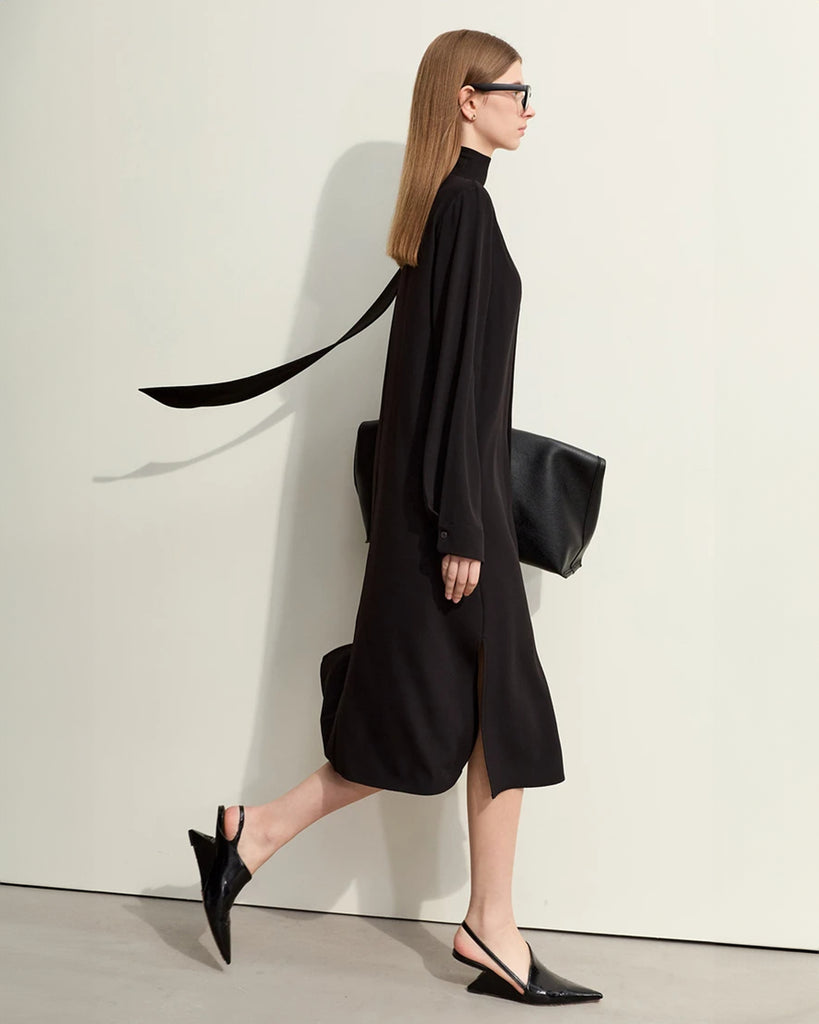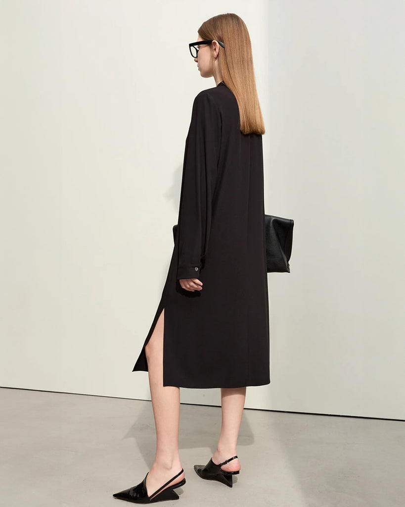 Poetic and lovely, the Primrose Dress features elegant chiffon and a timeless midi design. The long sleeves make it suitable for spring, while the v-neck adds a touch of minimalist charm.